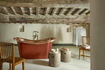 Ванну из меди можно расположить во многих стилях интерьера. Это не обязательно средиземноморский, античный или деревенский стиль, такая ванная неплохо смотрится и в современных интерьерах. Способов интегрировать этот материал в свой дом много и сочетать медь можно с разными другими материалами, например, деревом. Посмотрев эти фото, можно приблизительно прикинуть, как медная ванна будет смотреться в том или ином пространстве. Как видите, ей идут различные цвета и оформления.